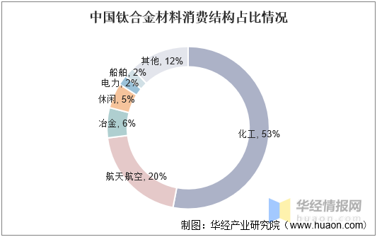 在國內鈦合金消費結構中,化工行業占比大,占比約為53%,航空航天占比第二,約為21%,遠低于50%左右的國際平均航空航天用鈦材比例,我國航空用鈦材市場還存在較大潛力。